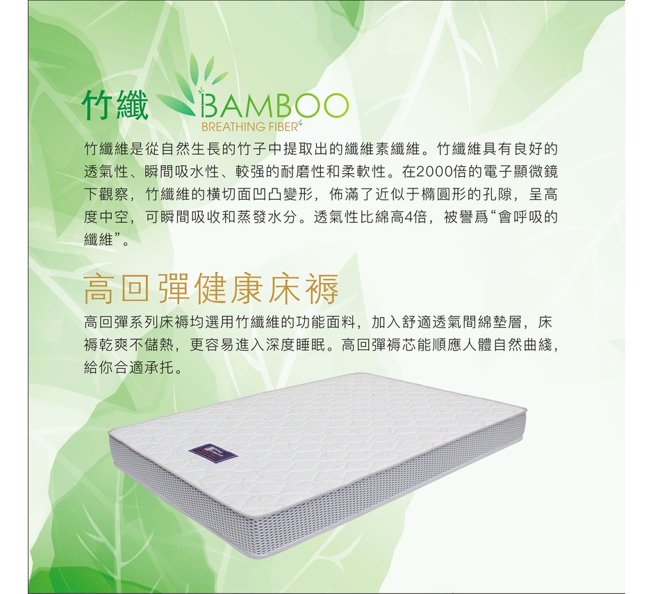 (2"/3"/4"/5"/6"厚)竹纖高回彈床褥-皇柏牌BAMBOO™